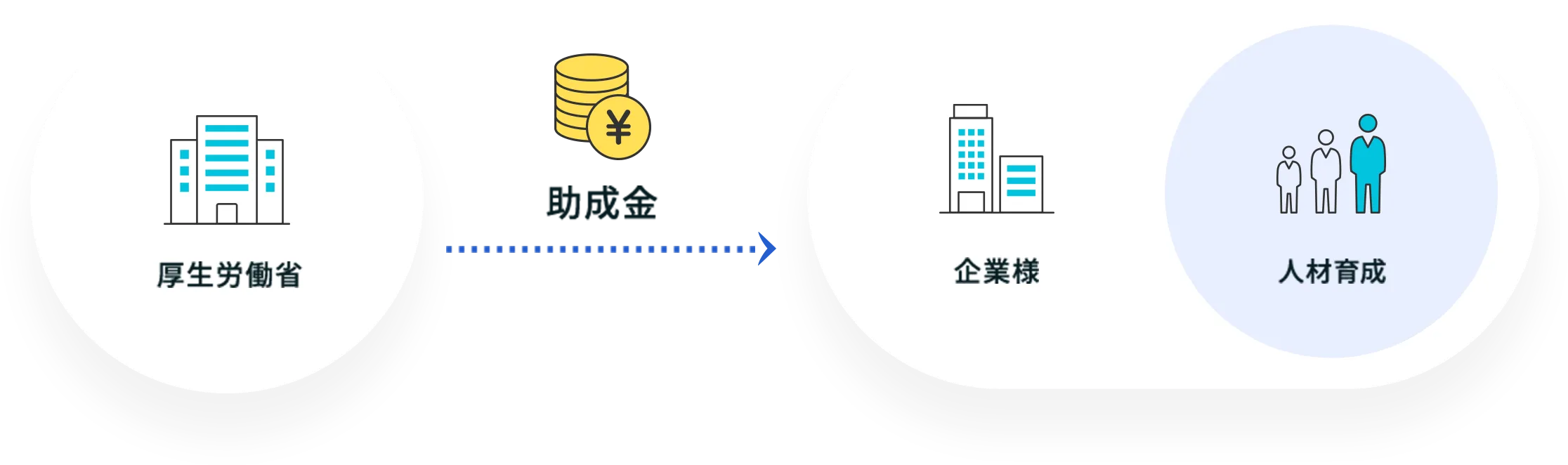 人材開発支援助成金は、企業様が雇用する労働者に対して、職務に関連した専門的な知識及び技能を習得させるための職業訓練等を計画に沿って実施した場合等に、訓練経費や訓練期間中の賃金の一部等を助成する制度です。